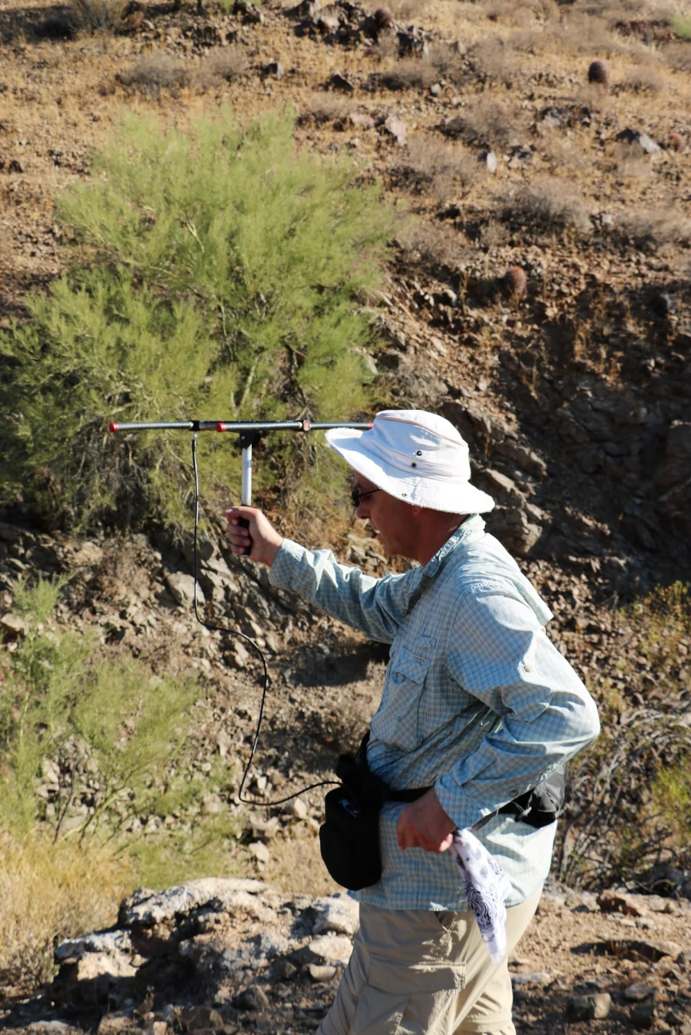 Dr. Brian Sullivan (Arizona State University) radiotracking a Sonoran desert tortoise (Gopherus morafkai) at his long-term study site. Photograph by George L. Heinrich.
